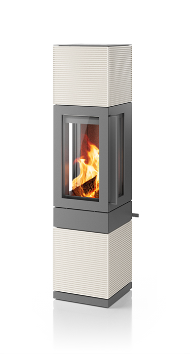 Une scène plus grande pour le spectacle du feu. C'est ce qui fait de PADUA un poêle à bois unique. Sa conception élaborée inclut une porte coulissante avec une ouverture facile vers le haut. Le module assorti offre l’espace de rangement idéal pour les bûches. Sa céramique faite à la main, aux textures travaillées et aux couleurs uniques, souligne le côté exclusif de PADUA. Disponible en deux tailles, PADUA peut aussi être équipé d'un bloc d’accumulation de chaleur.